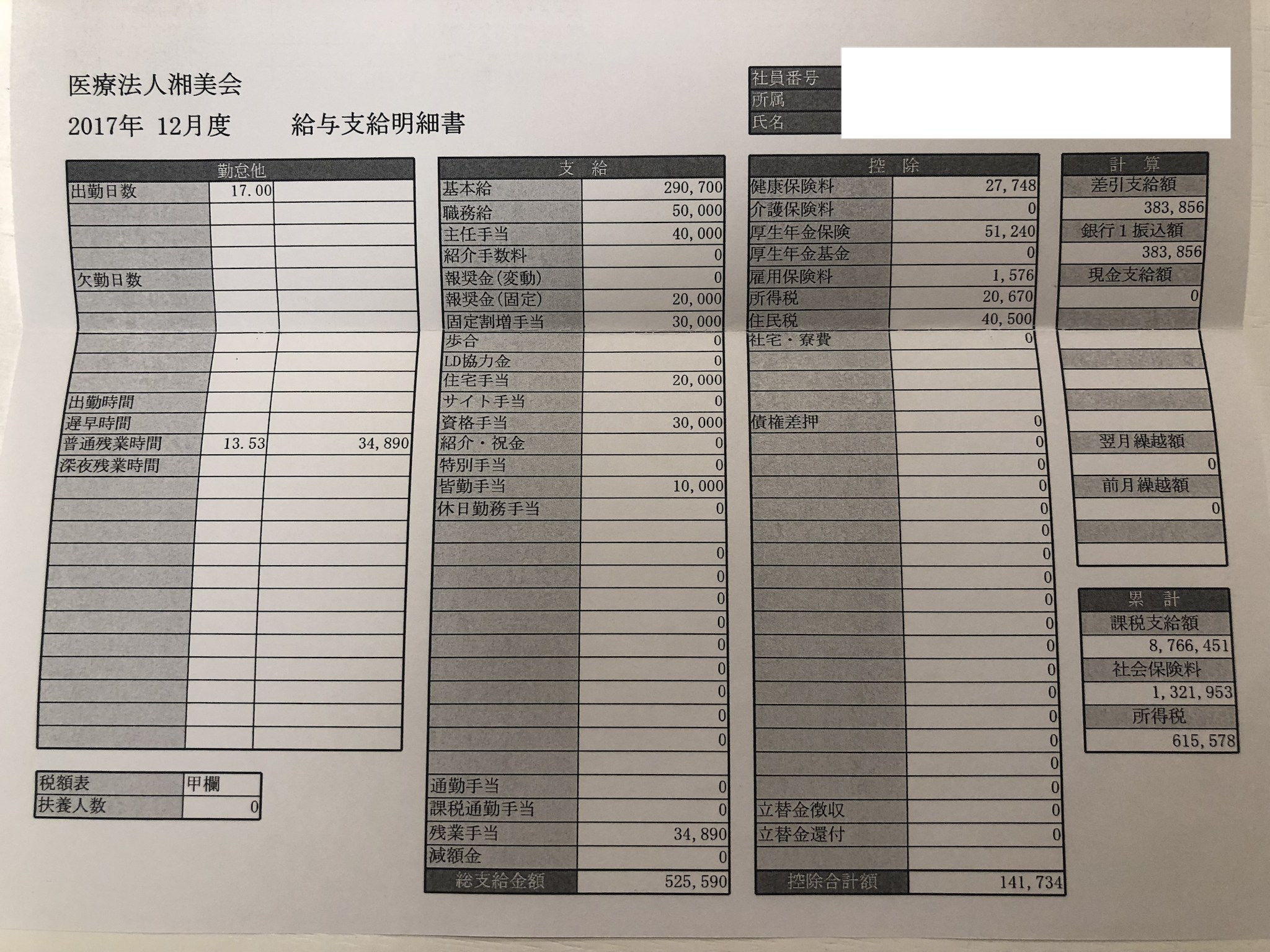 いつの給与明細:2017年12月