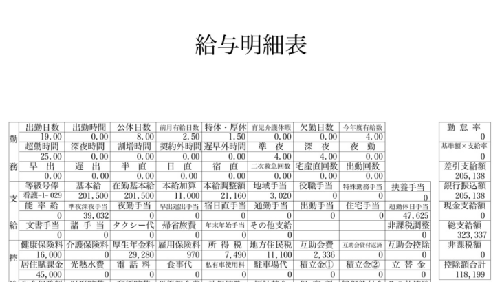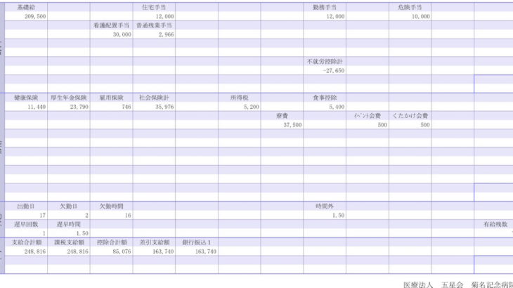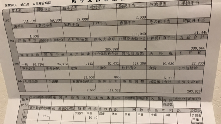 医療法人愛仁会太田総合病院の年収、給料、ボーナス、評判をお調べでしょうか。 実際に働かれている看護師・元看護師の方から給与明細画像を投稿頂きましたので、転職活動・就職活動のご参考になれば幸いです。 32歳男性・3〜5年目、医療法人愛仁会太田総合病院・看護師の給与明細 ※画像の無断転載を禁じます。 投稿者 31歳・男性・神奈川県 最終学歴:専門学校卒 看護師歴:3~5年目 資格:正看護師 勤務状況 […]